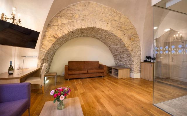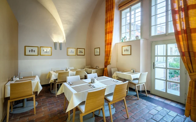 Romantic and cosy hotel Monastery with unique and unforgettable view of the Prague Castle, Lesser Town and the Old Town embroidered by Vltava river, is located directly in the city center in a peaceful garden of Strahov Monastery (national historic landmark, founded in 1142.