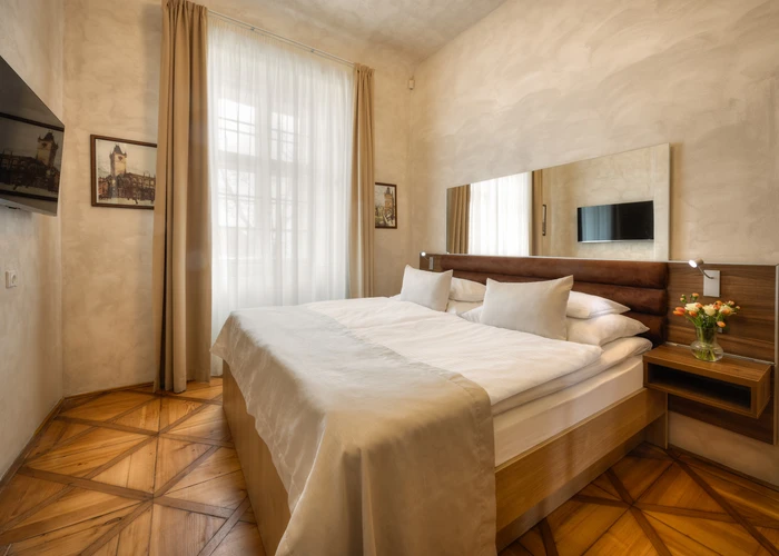 Zrenovovaný pokoj, který kombinuje moderní design a komfort s důrazem na moderní technologie.